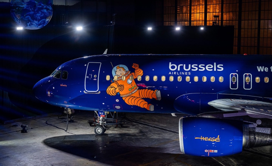 The aircraft is part of the exceptional “Belgian Icons” series, in which the carrier celebrates Belgium’s national heritage. This time, the inspiration comes from the world of Tintin’s adventures, especially his iconic space journeys depicted in albums such as Destination Moon and Explorers on the Moon.