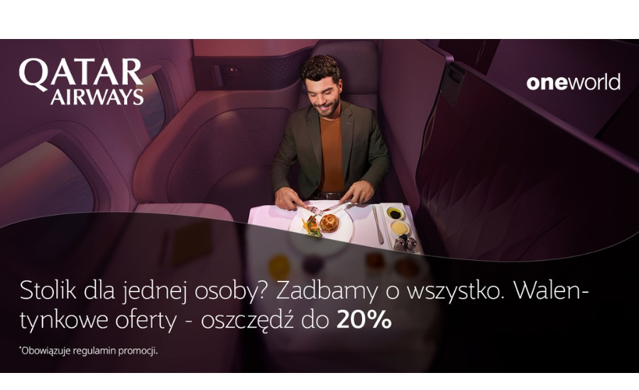Walentynki są idealnym momentem, by zaplanować kolejną wyprawę, a Qatar Airways zachęcają do tego specjalną promocją na loty do wielu fascynujących zakątków świata. Rezerwacji biletów lotniczych z rabatem do nawet 20% – można dokonać między 12 a 18 lutego 2026 roku. Nie czekaj skorzystaj z okazji na podróż na pokładach jednej z najlepszych linii lotniczych na świecie, cenionej m.in. za wysoki standard usług i komfortowe kabiny.